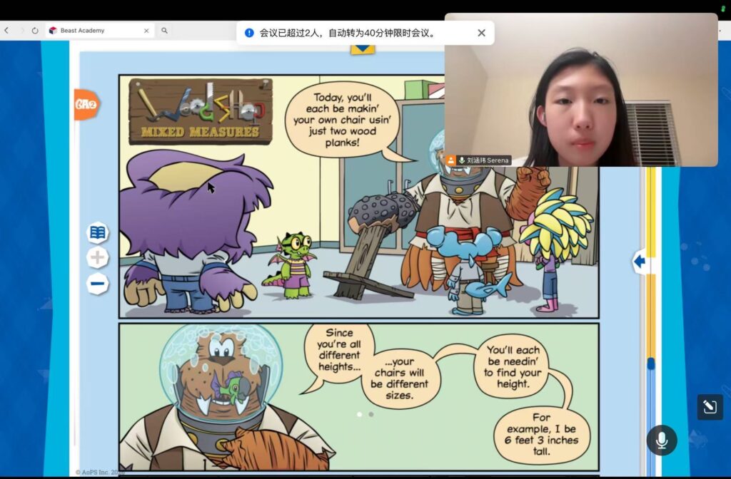 Serena Liu taught Level 2 Beast Academy curriculum for 2.0 hrs on March 21, 2026