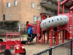 On Friday, 3/20, from 4:30 to 5:30, Yucheng Fu, Cody Ngo and I came to Firefighter Park for our volunteer work. We spent the whole hour accompanying a child, playing different games together in the park. We took turns on the swings, slid down the slide together, and ran around playing tag in the breeze. We laughed and chased each other, and the whole time was relaxed and lively.