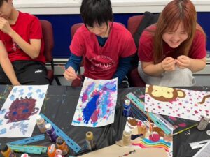 On 3/23/2026, Aylus volunteers went to Great Neck House for the Accessible Art Program from 5:30pm to 7:00pm (1.5 hours). Today, we are doing a special piece of art work. On a piece of paper, we dropped small amounts of paint in different colors and then used a ruler to spread them throughout the paper, often creating abstract shapes. Additional changes can be made using a brush, making the painting more natural and artistic. After that, a larger and finer piece of paper was used for the people with special needs, providing more space for the art. Our program allows more interaction between people for people with special needs, creating a satisfying experience of art for everyone.