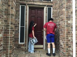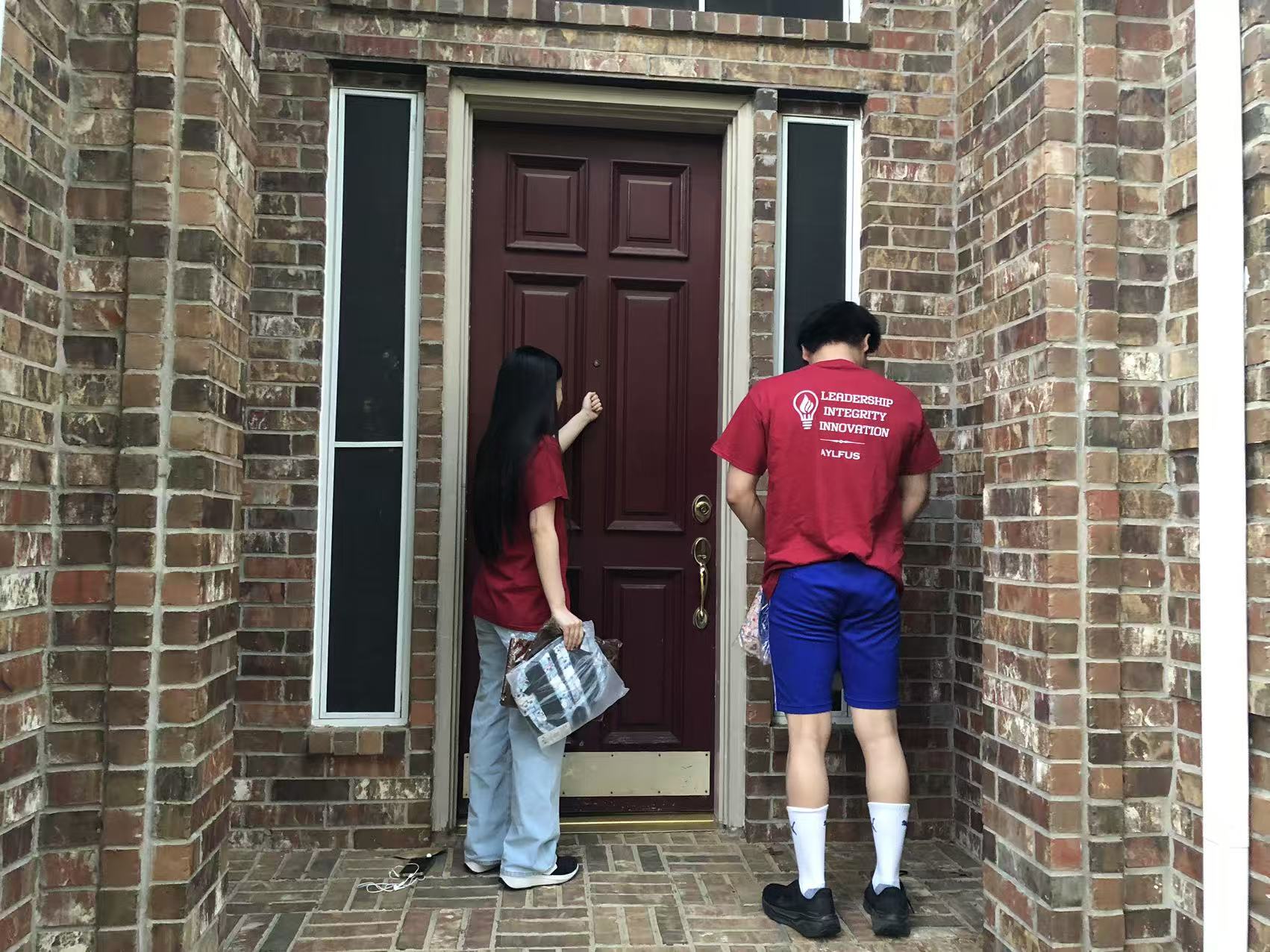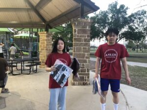 On Monday, February 23, 2026, volunteers from AYLUS Frisco Plano went to Russell Creek Park and the Russell Creek neighborhood to sell various items, such as backpacks and scarfs. Volunteers sold these items to help build schools in developing areas. All volunteers worked hard and sold many items during this session.