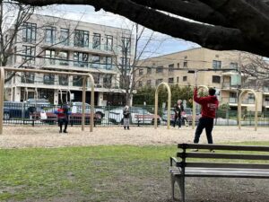 On Friday, March 27th, Yucheng Fu and Baiyu Chen came to the firefighter park in the soothing afternoon for some quiet and fun time playing sports with Jack. The volunteers played various sport activities with Jack. Yucheng brought a variety of sport equipment like soccer ball, badminton, and a traditional chinese sport called Jianzi. Jack enjoyed the volunteer’s company and had a lot of fun. After a while, the children went to the playground and took turns going down the slide and went on mini-monkey bars on the side. They played hide and seek and tag. The volunteers made full use of every second of the activity, giving Jack a meaningful and exciting experience.