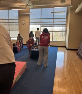 AYLUS Basking Ridge members participated in the Saturdays in Motion program at the GSCY YMCA on 3/21/26. Our members helped set up the gym rooms before the children arrived. Once the session began, each volunteer was paired with a child with special needs and engaged in various activities such as using the gymnastics equipment, playing catch, running on the inflatable track, and more.