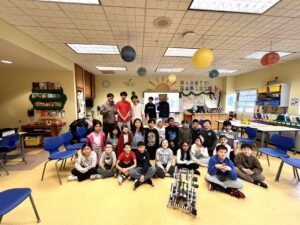 Finally, we let the kids drive the robots around. However, one of the radios on the robot stopped working, so instead of having 2 robots being driven around at once, only one could be driven at a time. Despite this, we were still able to give every student the opportunity to drive the robots around, however we didn’t have enough time to do some of the other activities we had planned. In the end, we helped rearrange and clean the room, and the students helped us pack away our robots.