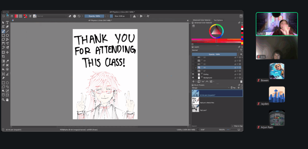 The AYLUS Lake Washington Branch successfully held the second session of the AP Physics 1 Prep Camp on March 29, 2026, led by instructor Yufei Ye with assistance from Eric Huang. The class ran from 7:00 PM to 9:00 PM and included a structured lecture followed by a Q&A session. Yufei also dedicated additional time after class for homework correction.