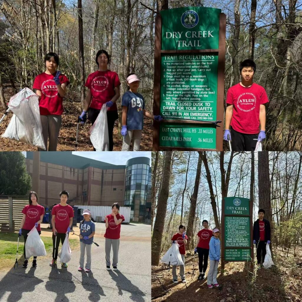 On March 14, 2026, four members of AYLUS Chapel Hill carried out a community clean-up along Dry Creek Trail and the surrounding areas to help improve the local environment. Equipped with gloves and trash bags, the volunteers removed litter from the trail, including plastic bottles, food wrappers, and other waste harmful to the environment. Their efforts helped create a cleaner trail and raised awareness about the importance of environmental protection. During the activity, a couple of visitors along the trail greeted the volunteers and expressed appreciation for their work. AYLUS Chapel Hill continues to encourage community members to participate in future clean-up events and contribute to building a greener and healthier environment.