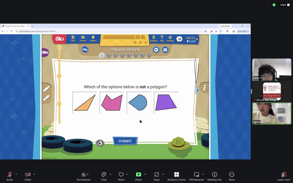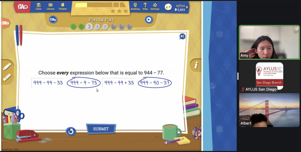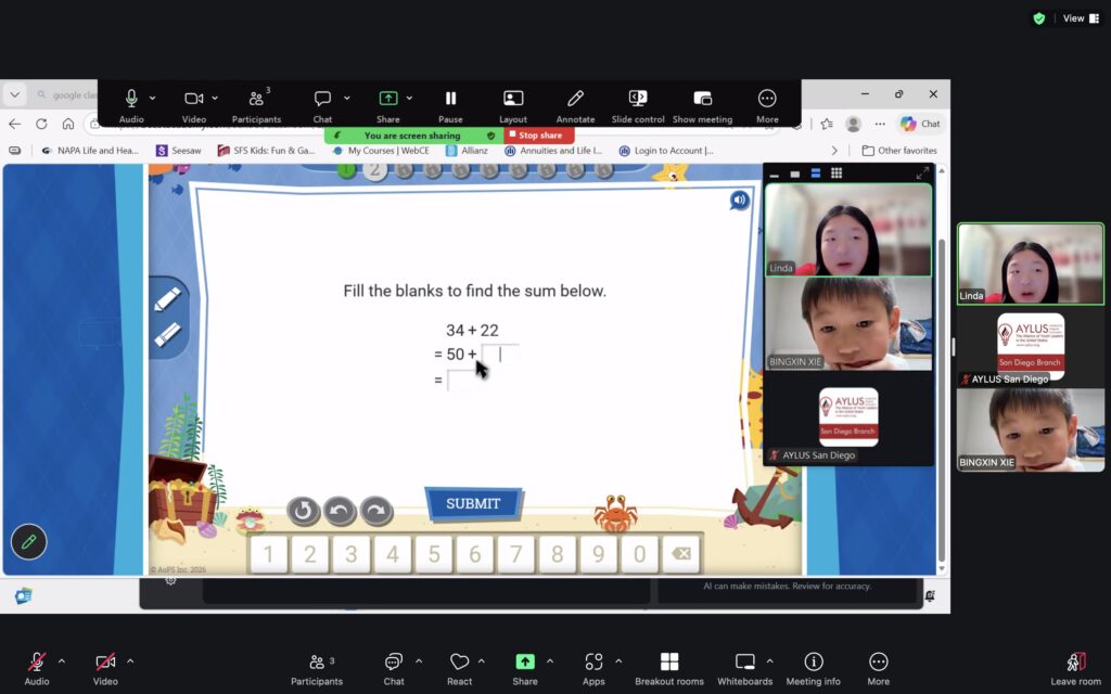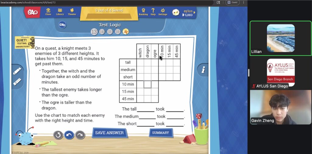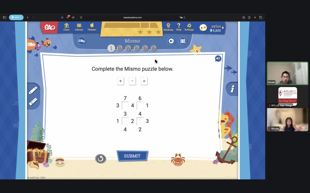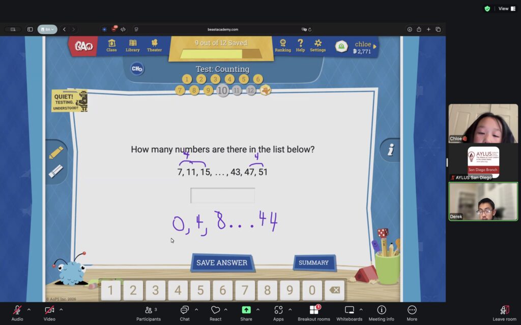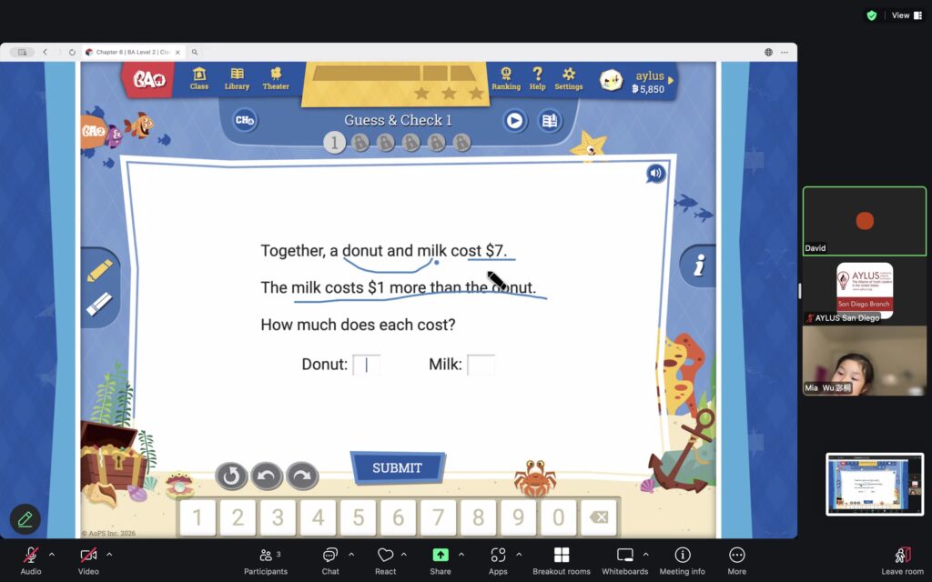AYLUS San Diego Committee kicked off the Beast Academy online class in 2020 during the COVID-19 period. During 2025-2026, we continue cooperating with Libraries of Love to raise funds. The 81th Beast Academy online class in 2025-2026 was on March 23-March 29, 2025.