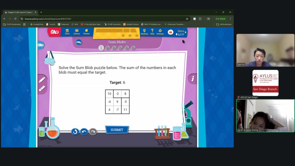 Beast Academy is a mathematics program for elementary and middle school students, and highly qualified high school volunteers will be teaching the Beast Academy curriculum. Currently at the San Diego Branch, enough students have signed up for this course for it to be offered in five levels: 1, 2, 3, 4 and 5. Through tutoring sessions hosted virtually over Zoom, our volunteers teach students numerous informative mathematical concepts that help to bolster problem-solving skills and improve their mathematical knowledge.