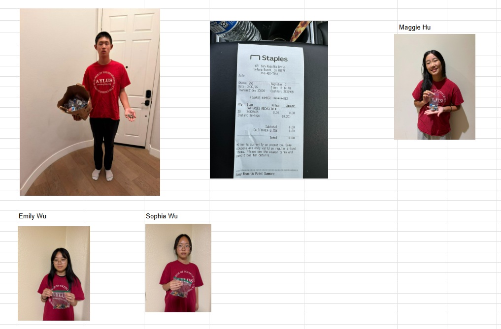 AYLUS San Diego Branch organized the 25th collection and recycling of used batteries in March 2026. We dropped the batteries to recycle at Staples, where our volunteers collected a total of 7 lbs of used batteries.