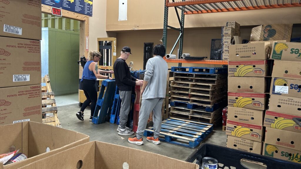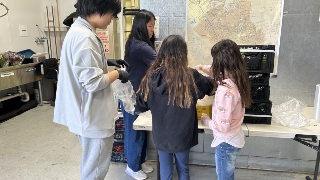 After completing the dry food tasks and helping clean up the area, members moved to the produce section. There, they sorted fresh parsley and carefully bagged two bunches per bag. These bags were then added to the distribution boxes by other volunteers.