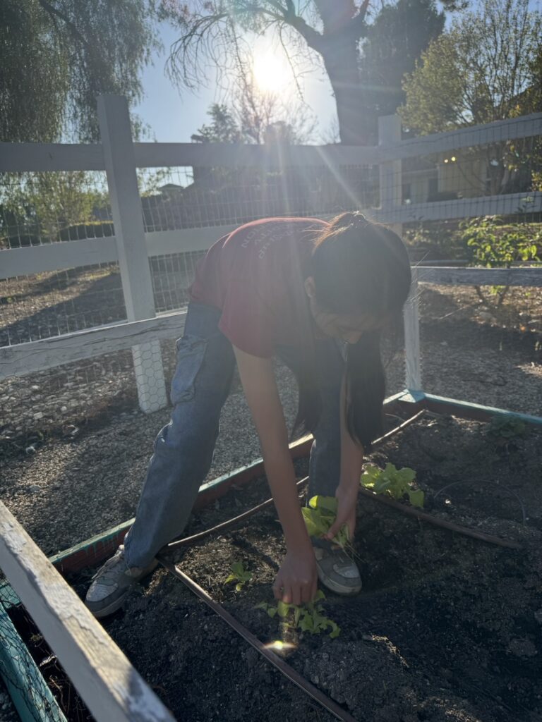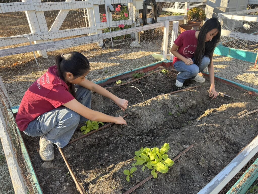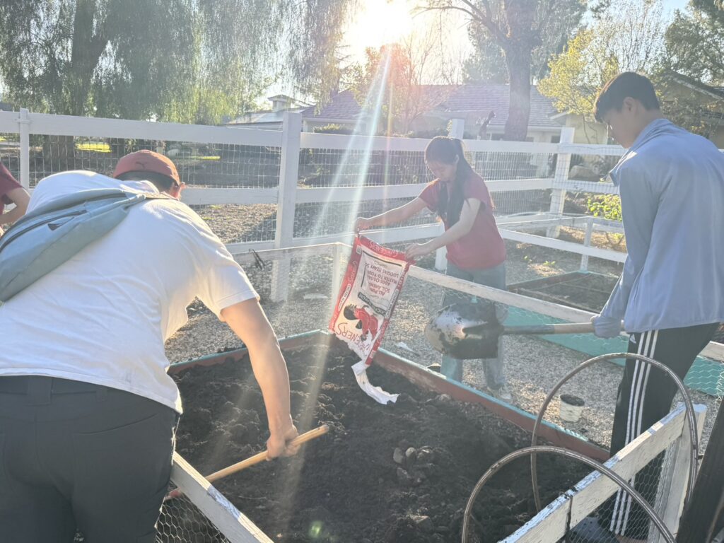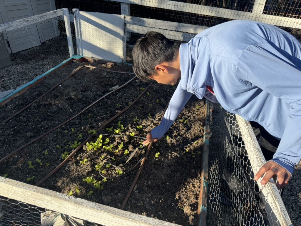 On March 14th, Murrieta members went to the vegetable garden for routine maintenance, carefully weeding, loosening the soil to improve aeration, and fertilizing to promote healthy plant growth. Afterwards, we transplanted the last batch of tomato seedlings we had cultivated. We also picked fresh lettuce and delivered it to the residents of Jacob’s House.