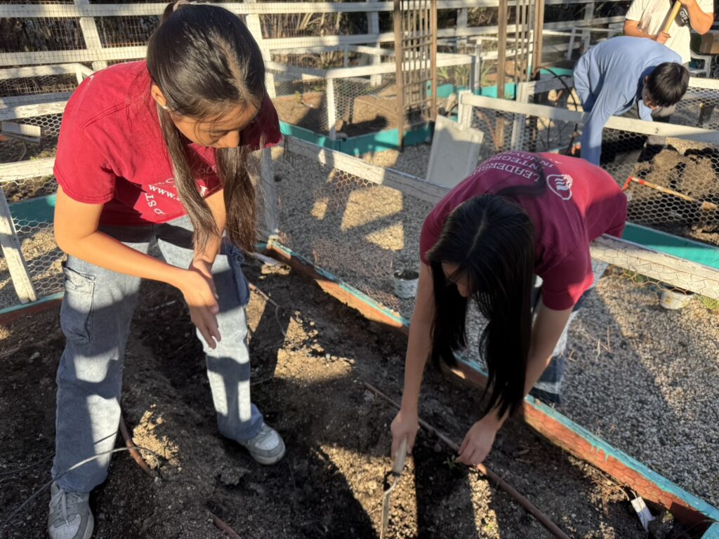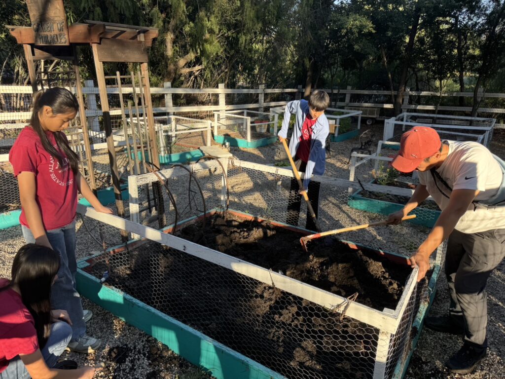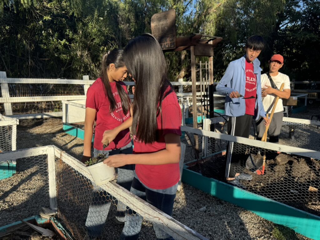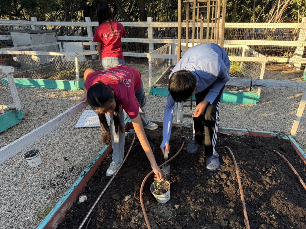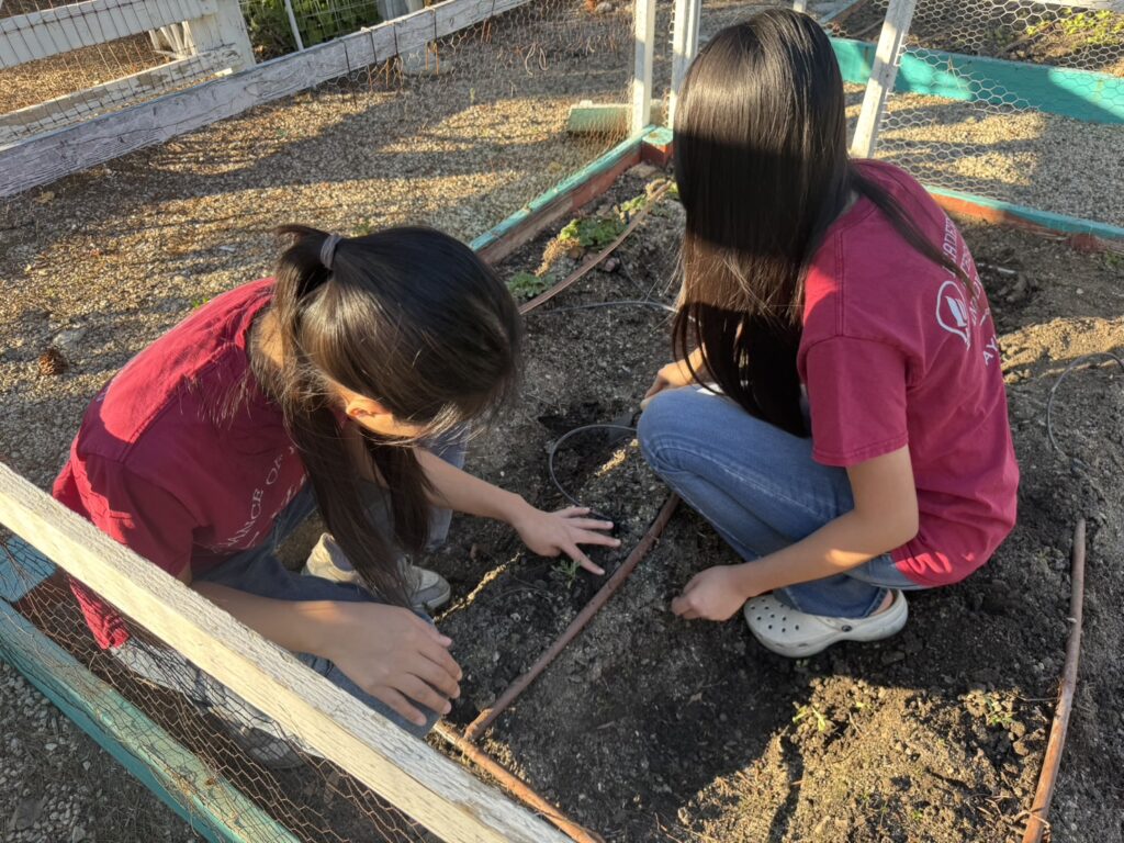 On March 14th, Murrieta members went to the vegetable garden for routine maintenance, carefully weeding, loosening the soil to improve aeration, and fertilizing to promote healthy plant growth. Afterwards, we transplanted the last batch of tomato seedlings we had cultivated. We also picked fresh lettuce and delivered it to the residents of Jacob’s House.