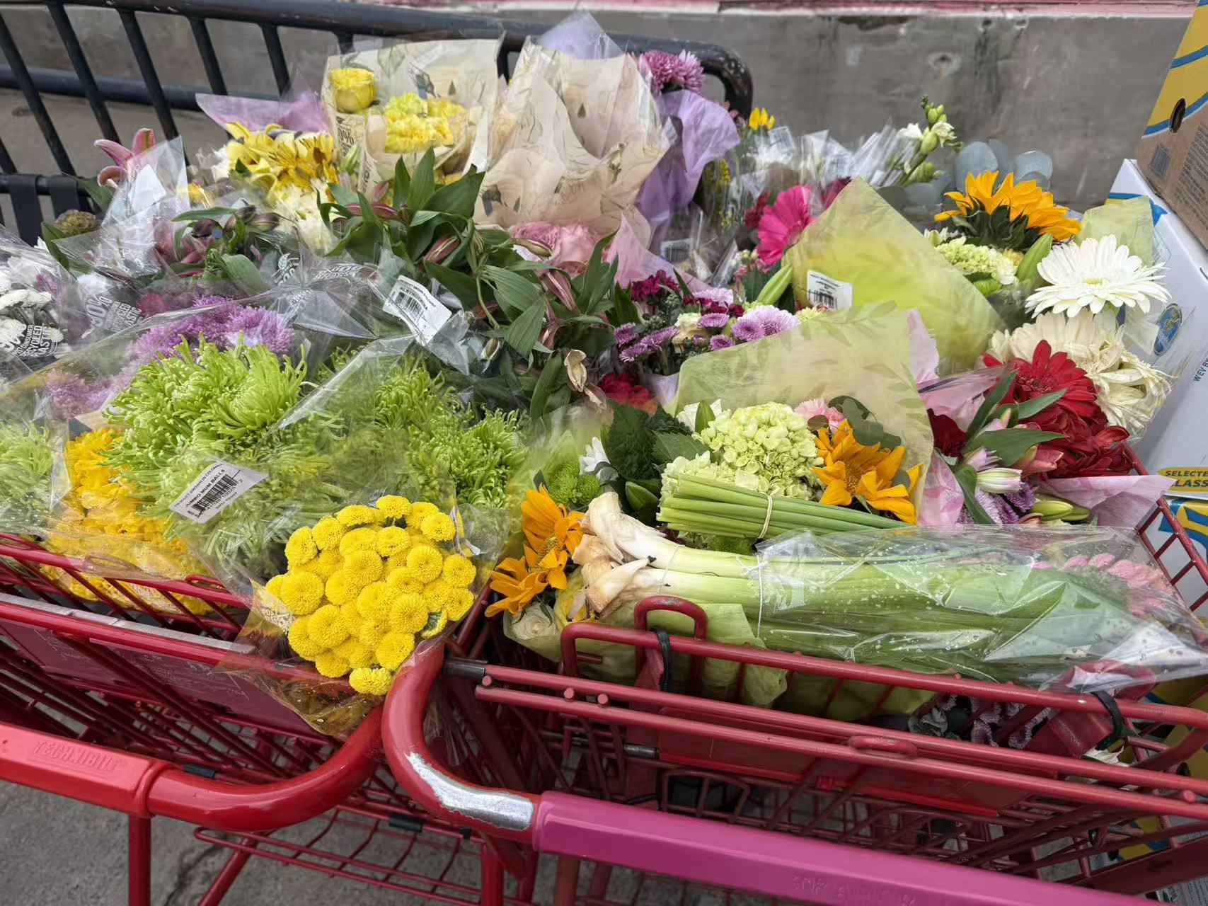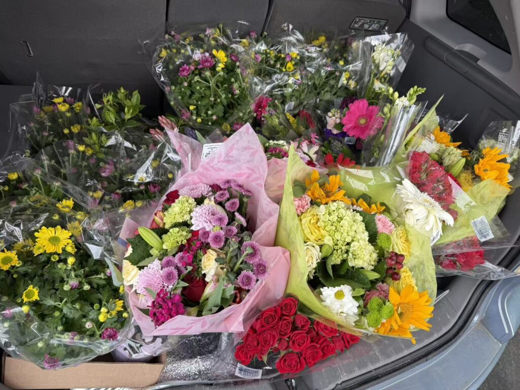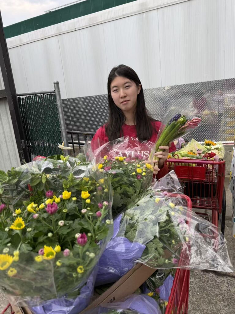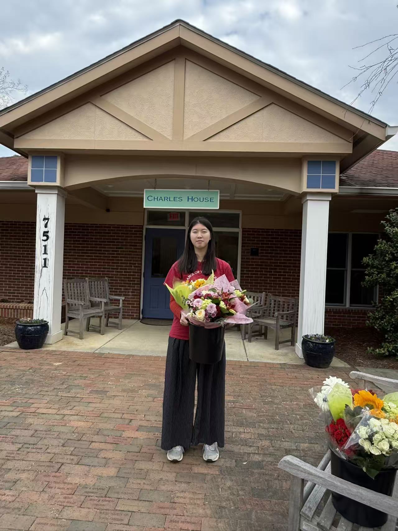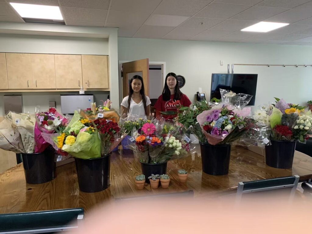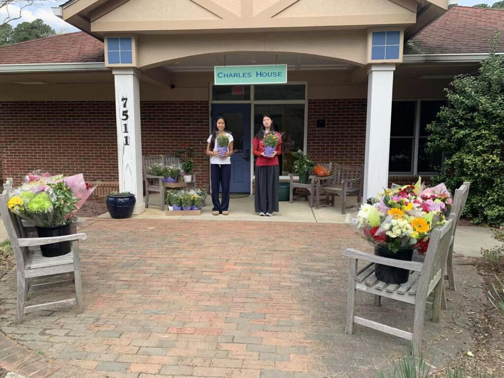Volunteers Karen Lin and Leah Yang worked together to collect the blooms and bring them to Charles House, a nonprofit organization that provides enriching care for seniors and those with dementia within the Carol Woods Retirement Community. The flowers will be used by the senior residents in their flower arrangement activities, offering a creative and uplifting experience that brings joy to their day.