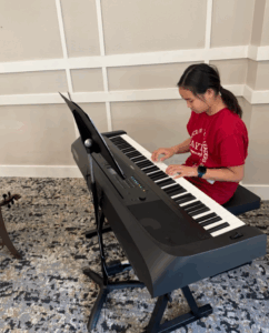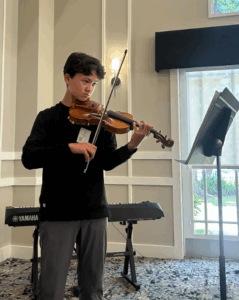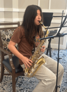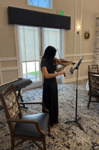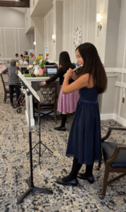 Volunteers from the AYLUS Irvine Branch hosted a special performance at a local senior center, sharing music and dance to bring joy to the residents. During the event, members showcased a variety of talents, including instrumental performances on the violin, piano, clarinet, and cello, creating a rich and engaging musical experience.