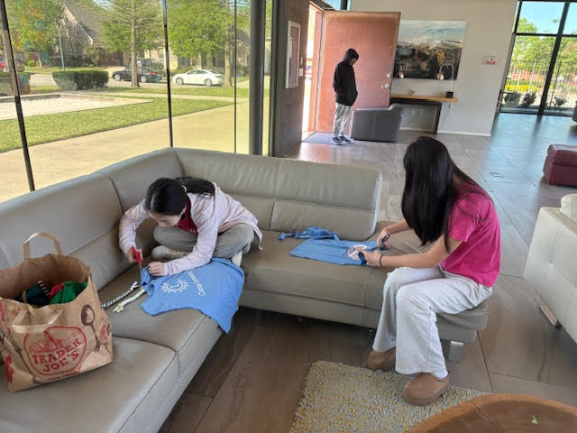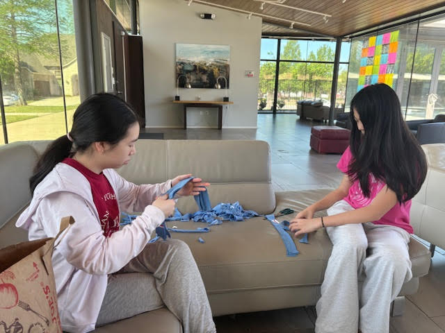 On April 5th, we gathered at the Cypress Meadow Clubhouse in Allen, TX, to create pet toys from old clothes for the cats and dogs at the local animal shelter. We started by teaching the new volunteer how to cut t-shirts into strips for making the toys. After that We continued making the pet toys.After finishing, we made sure to clean up. Overall, it was a fun and rewarding experience. We were thrilled to contribute to the well-being of the shelter animals by providing them with these handmade toys.