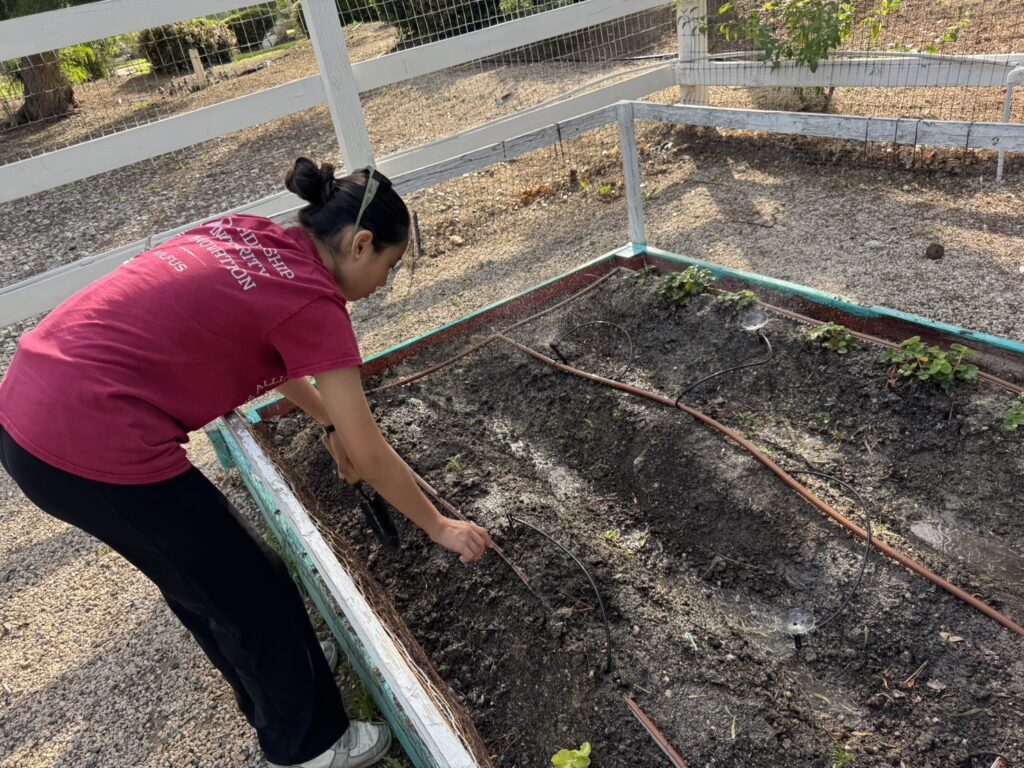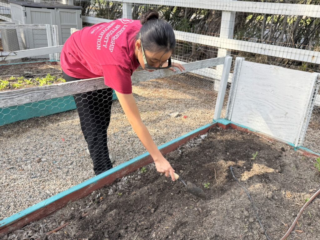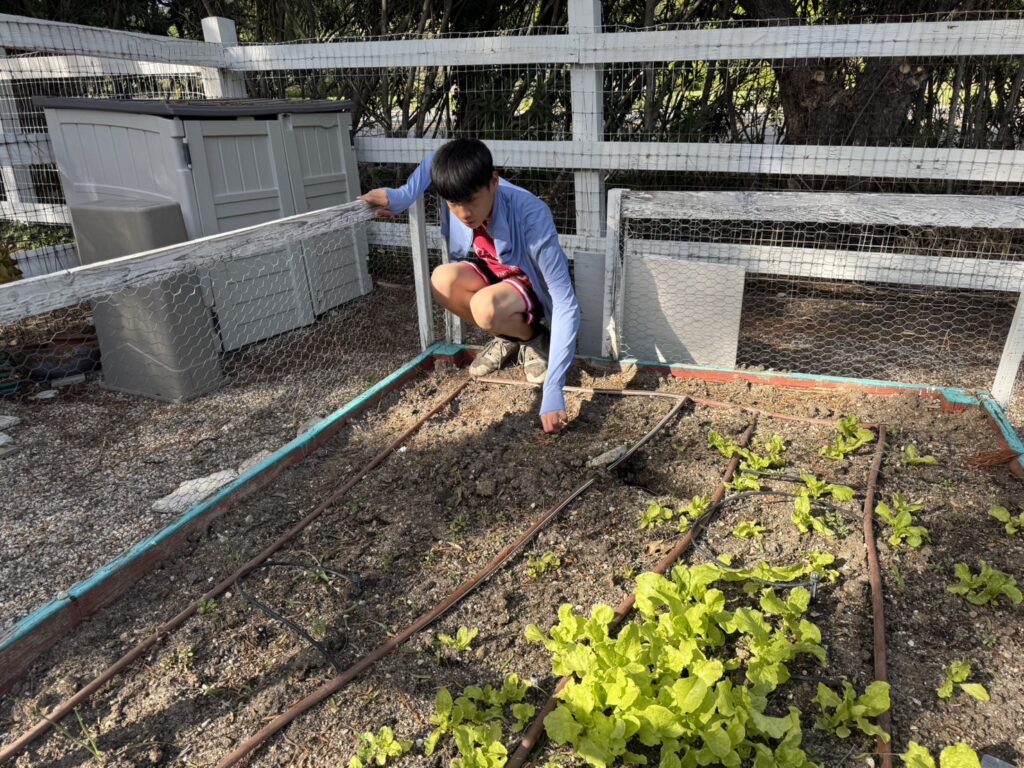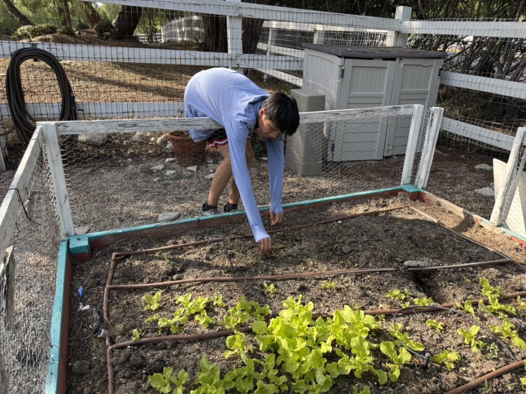 On March 28th, Murrieta members went to the vegetable garden for routine maintenance. We carefully removed the weeds growing around the plants to help them grow better and keep the garden clean and healthy.