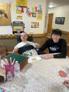 By this time, the cookies had finished baking and were still nice and warm so we decided to take a break to enjoy them. Some residents couldn’t eat solid food so we mashed the cookies up so they could still enjoy eating them. Everyone really loved the cookies and it ended up being a nice break for all of us.