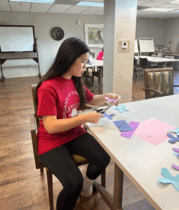 Volunteers provided assistance and encouragement while teaching simple crafting techniques, allowing seniors to express their creativity and enjoy a relaxing, engaging activity. Throughout the event, members spent time talking and bonding with participants, creating a warm and welcoming environment.