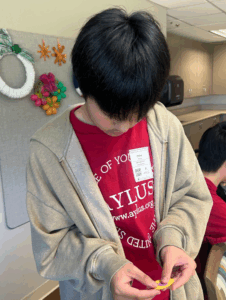 On April 11, 2026, volunteers from the AYLUS Irvine Branch hosted a hands-on activity at a local senior center from 1:00 to 3:00 PM. During the event, members worked closely with seniors to create decorative flower baskets, guiding them step-by-step through the process.