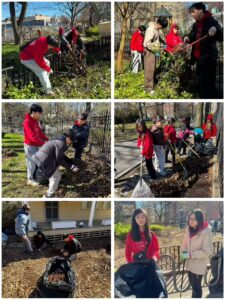 On Saturday, April 11th in the year 2026 from 8:45 to 12:15 members of AYLUS Oakland Gardens picked up trash, pruned plants, sweeping, and raked leaves at Weeping Beech Park and Kingsland Homestead as their 220th event. This was possible under the guidance of Maureen Reagan and Ada, who we were able to learn a lot from throughout our time spent working with them. We were taught about local species, and why certain tasks were necessary. Many members came out to dedicate their time to the betterment of the community.