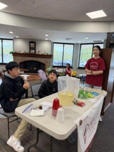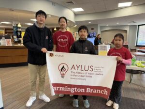 The AYLUS Farmington Branch continued its tradition of supporting the Farmington Library yearly through a community fundraising event. Students held a small-scale sale featuring lemonade, snacks, books, and toys.