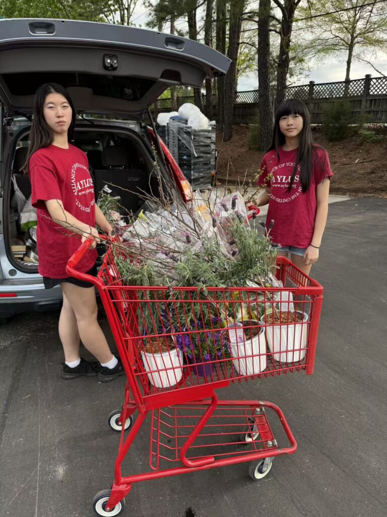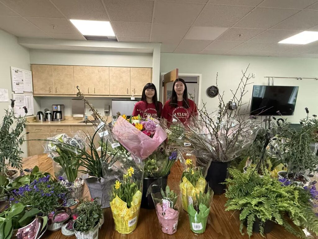On Sunday morning, April 12th, two members of the AYLUS-Chapel Hill branch picked up two carts of flower bouquets and potted plants from the local Trader Joe’s. These flowers were then delivered to Charles House, just one of many recreational activity centers in Carol Woods, and watered to keep fresh. Throughout the week, residents will come by for workshops to try their hand at creative and technical flower arranging which will decorate the tables of staff and areas around the center and serve as another reminder of many spring blooms that can also be found outside. We look forward to and are grateful for each opportunity to give back to the community, see you next time!